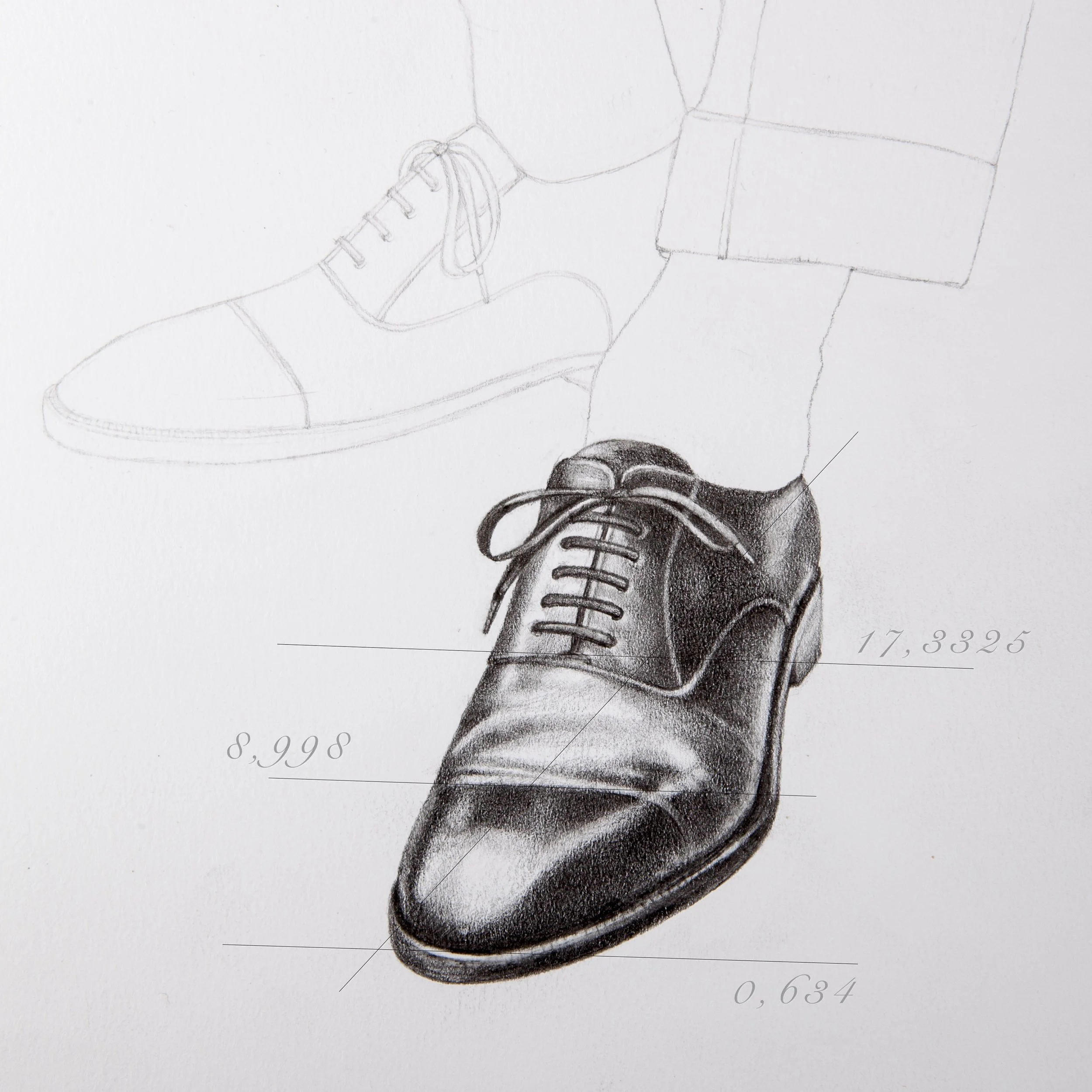 "The perfect proportions of the Vitruvian man, the arrangement of the seeds within a flower, the sequence of prime numbers, as the right proportions that a shoe must have. "With these premises we exhibited the construction of men's footwear at the Giacopelli workshop in Parma. 10,000 images taken and more than 60 drawings selected to compose a unique project: telling the tradition and excellence of a made in Italy craftsman product.